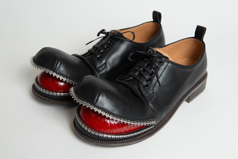 Doublet’s showcase for FW25 tapped into a villainous spirit — putting an ominous twist on its typically whimsical design language. Present throughout many of the runway’s looks was a special Kids Love Gaite derby. The duo’s eye-catching shoe flips the old business in the front, party in the back adage on its head as its toe has been modified to create the mouth of a monster. This element sees hardware represent teeth while the mouth’s opening reveals a red layer underneath.