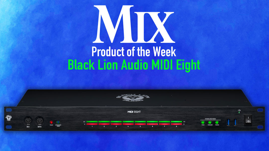 New York, NY (January 15, 2026)—The MIDI Eight from Black Lion Audio is an 8-in/8-out MIDI interface designed to help manage MIDI I/O for an assortment of devices, with or without connection to a computer. It includes a powered five-port USB hub and supports three standalone MIDI routing modes.