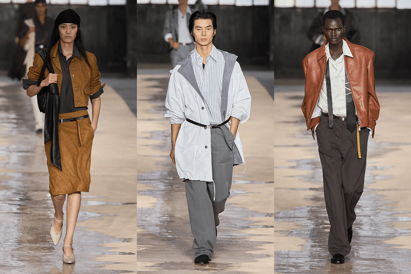 BOSS’s bread-and-butter tailoring remains untouchable, yet SS26 was infused with a contemporary ease. Cream linen suits moved with undone neckties and layered shirting, while airy womenswear traced the female form with fluid grace. Leather coats were cinched over suspended culottes and pinned accessories, followed by structured trench coats, sheer knitwear, and glossy leather trousers. Accessories made their presence known — oversized briefcases and bucket bags demanded attention.