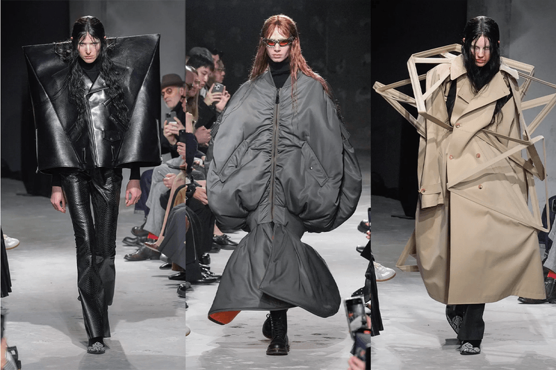 Next, Watanabe redefined the traditional trench coat, distorting thin-cut fabrics into three-dimensional sculptures. Models were swallowed by spherical fur and ballooning puffer jackets shaped into abstract silhouettes grounded in atypical designs. Watanabe wrapped his FW25 collection with paneled tuxedos, allowing us to watch a master at work.
