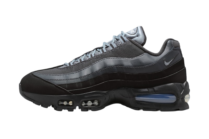 The sneaker maintains its signature tiered aesthetic, utilizing a premium blend of black and anthracite mesh across the upper. This shadowy base is layered with synthetic panels in fluctuating shades of charcoal and gray, while metallic silver embroidery provides a sharp visual break. Highlighting the shoe’s functional roots, reflective eyelets and rope laces are woven into the construction. Underfoot, the aesthetic is anchored by a blacked-out midsole housing visible Air units. A lightly stained blue hue is tucked inside the cushioning, finishing the pair with a delicate touch of color. Look out for the pair to arrive shortly in Spring.